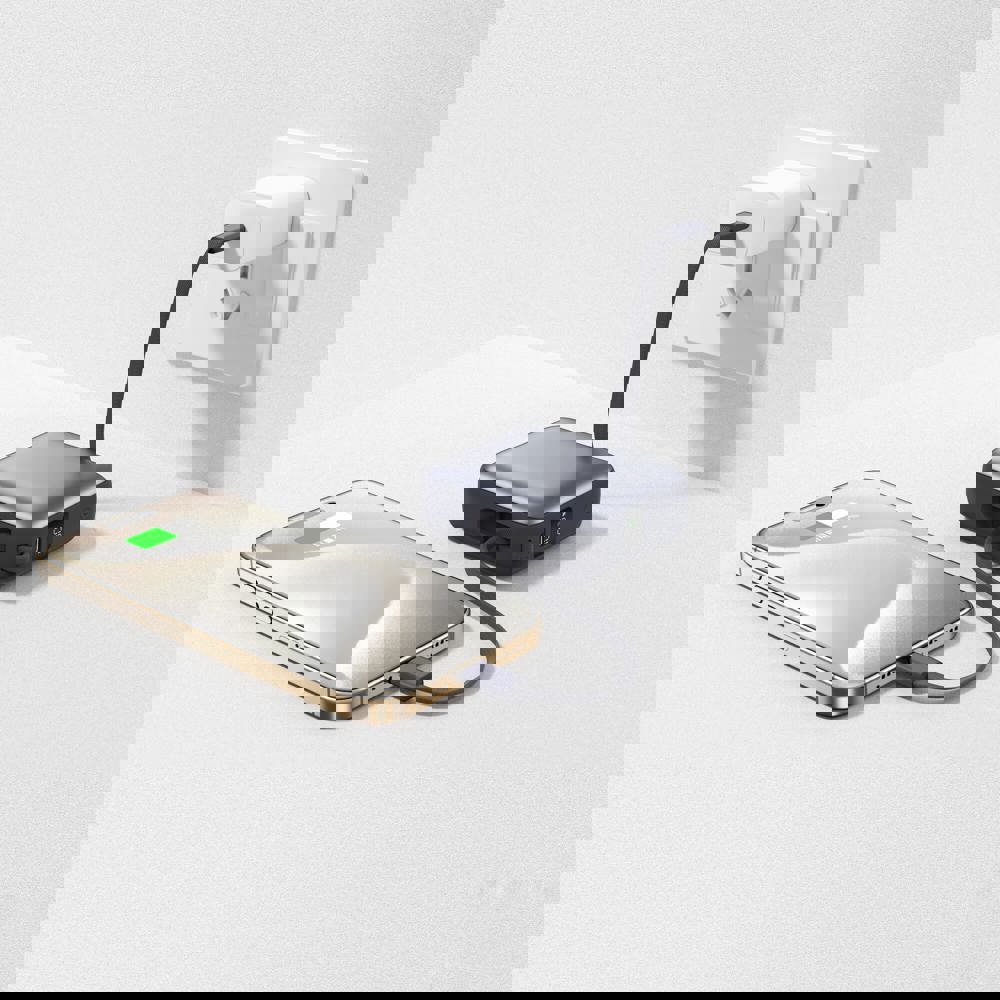 De Nova Powerbank combineert kracht en efficiëntie in een compact ontwerp. Hij is uitgerust met ingebouwde USB-C- en Lightning-kabels en levert 22.5 W snelladen met power delivery. De capaciteit van 10.000 mAh zorgt voor langdurig gebruik en het LED-display geeft de batterijstatus in realtime weer. Altijd en overal directe energie binnen handbereik.